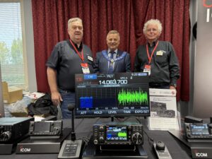 Icom also had donated a prize of an Icom IC-705 portable transceiver for the raffle that raises money for the RSGBs DX fund. This helps fund DXpeditions and supports young people in their endeavours to join the expeditions to remote places on earth. We also donated a couple of items to a radio club that supports Icom and use Icom equipment in their training and club station, an LC-192 rucksack and SM-50 microphone. Photos below of both items being handed to Bob Bebe (RSGB President) and The members of Norfolk ARC for the mic and rucksack.